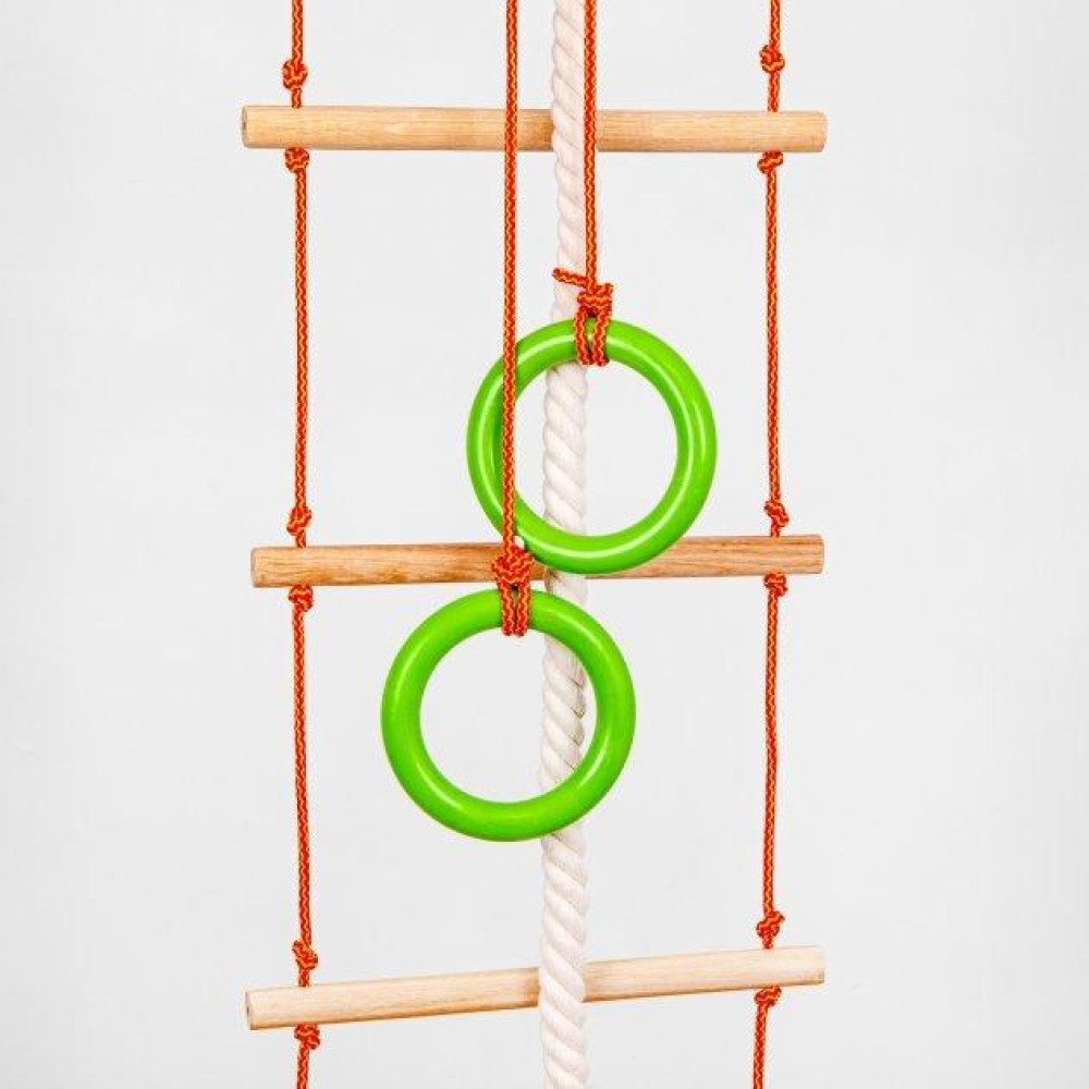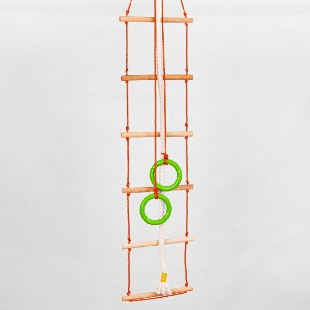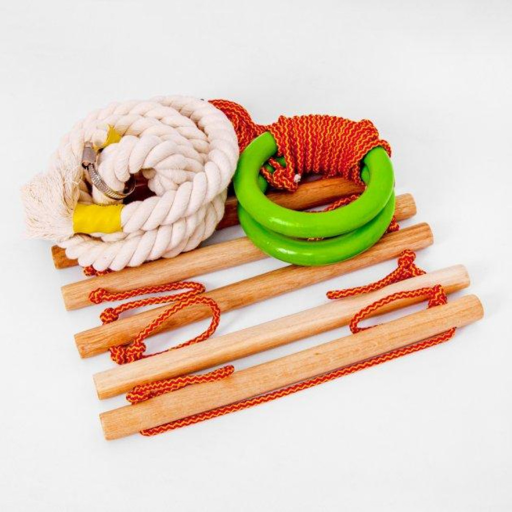 Dziecięcy zestaw zawieszany do drabinki szwedzkiej i placu zabaw wykonany z niezawodnych i wysokiej jakości materiałów.
