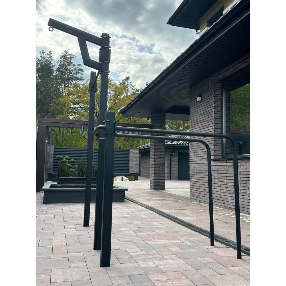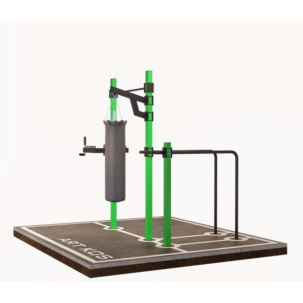 - Maksymalny zestaw: Zawiera drążek poziomy, drążki równoległe, wiązania gruszkowe, linę, tablicę do koszykówki i kramę z mocowaniem sztangi.