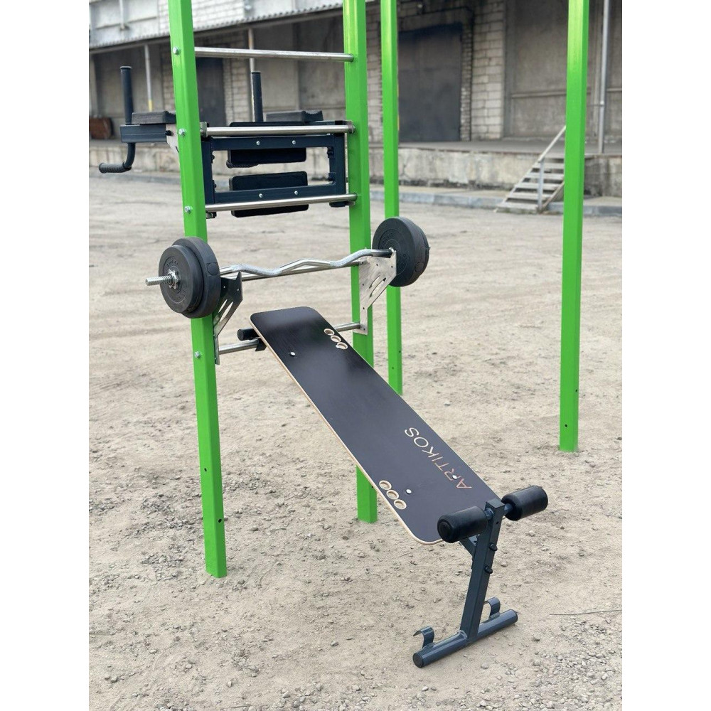 - Ławka z mocowaniem sztangi: (do ćwiczeń siłowych z ciężarami).