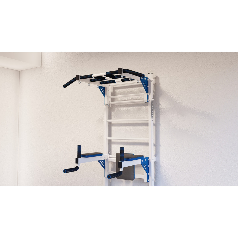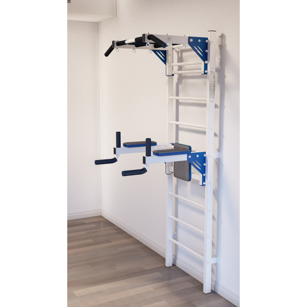 Zamień swój dom w siłownię dzięki naszej drabince ściennej! Ten wszechstronny system obejmuje drabinkę gimnastyczną o wysokości 230 cm, zdejmowany drążek do podciągania z mostkiem o długości 60 cm oraz drążki brzuszne.