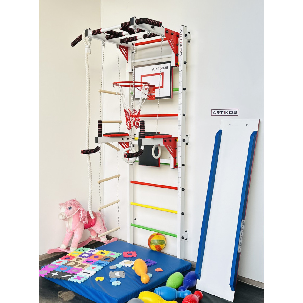 Wszystkie szwedzkie drabinki ARTIKOS są wzmocnione i posiadają w podstawie profilową rurę o wymiarach 60x40x2mm oraz 6 punktów mocowania do ściany za pomocą 2 kotew, co pozwala na komfortowe i bezpieczne użytkowanie. Idealnie nadaje się dla całej rodziny i wytrzymuje ciężar zarówno dziecka, jak i dorosłego, a nawet więcej niż jednej osoby.