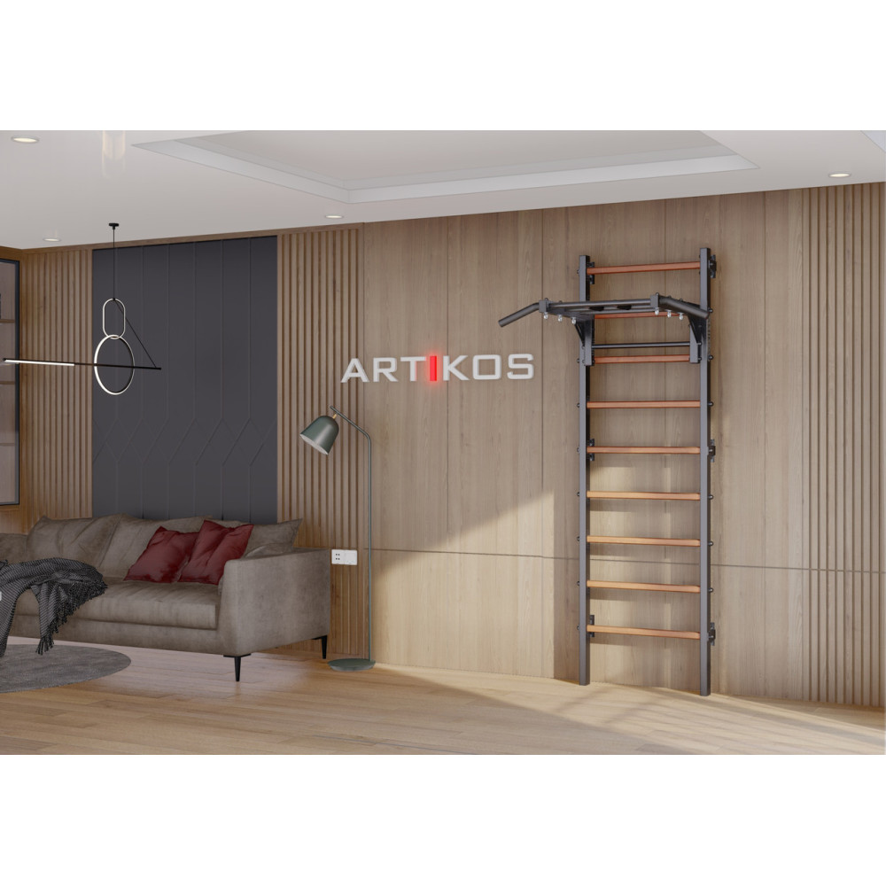 • Drabinka gimnastyczna z poziomym drążkiem to czarny Artikos PREMIUM