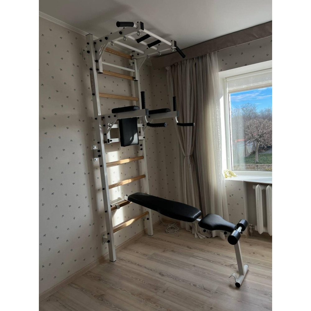 Drabinka szwedzka dla dzieci i dorosłych, wyposażona w stopnie wykonane z twardego drewna (jesion, dąb), które są ciepłe w dotyku i przyjemne do chwytania.