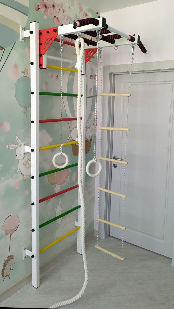 W magazynie Kod produktu: 1771952858 Drabinka gimnastyczna z poziomym drążkiem i słupkami ARTKOS wzmocniona białymi schodami sygnalizacją świetlną699EUR
