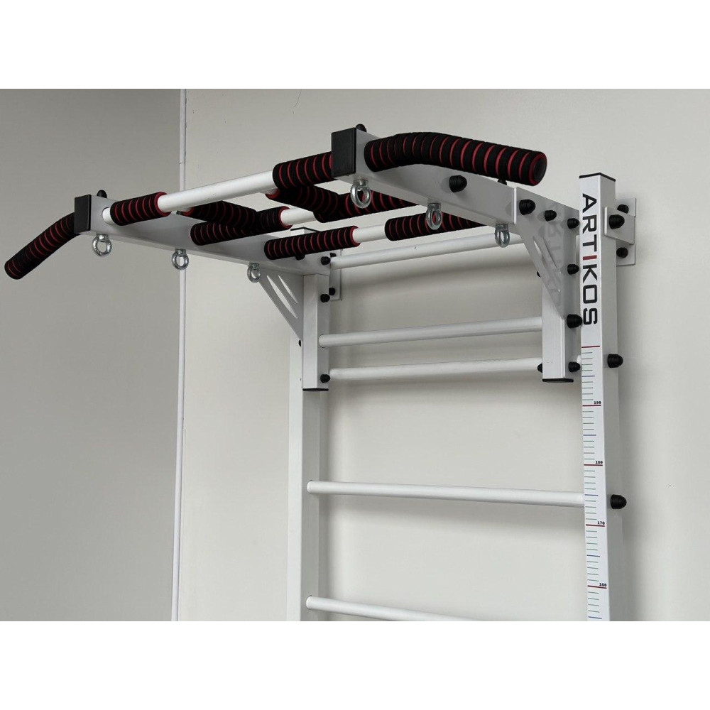 Wszystkie szwedzkie drabinki ARTIKOS są wzmocnione i posiadają w podstawie profilową rurę o wymiarach 60x40x2mm oraz 6 punktów mocowania do ściany za pomocą 2 kotew, co pozwala na komfortowe i bezpieczne użytkowanie. Doskonale nadaje się dla całej rodziny i wytrzymuje ciężar zarówno dziecka, jak i dorosłego, a nawet więcej niż jednej osoby.