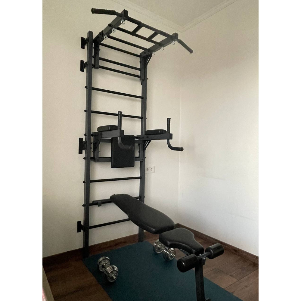 Zamień swój dom w siłownię dzięki naszej drabince ściennej! Ten wszechstronny system obejmuje drabinkę gimnastyczną o wysokości 230 cm, zdejmowany drążek do podciągania z mostkiem o długości 60 cm oraz drążki brzuszne.